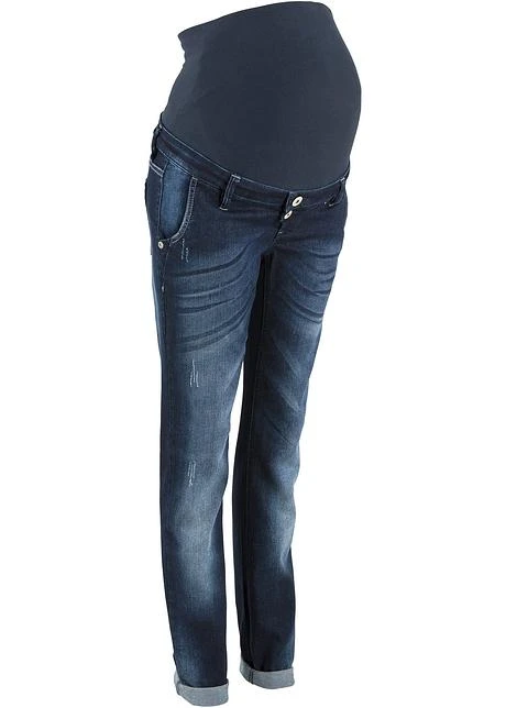 Jean de grossesse de coupe 5 poches avec poches classiques devant et dos, jambes fuselées et style Boyfriend. L’empiècement en matière T-shirt élastique lui permet de s’adapter à votre ventre tout au long de la grossesse.