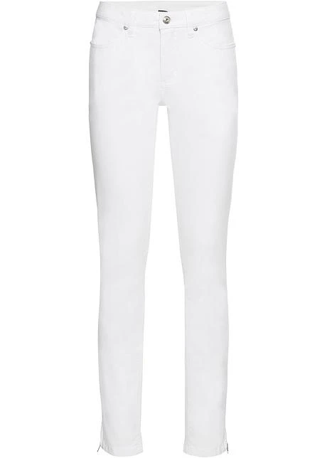 Pantalon extensible avec jambes étroites et petit zip à la base. Long. entrejambe env. 74,5 cm.