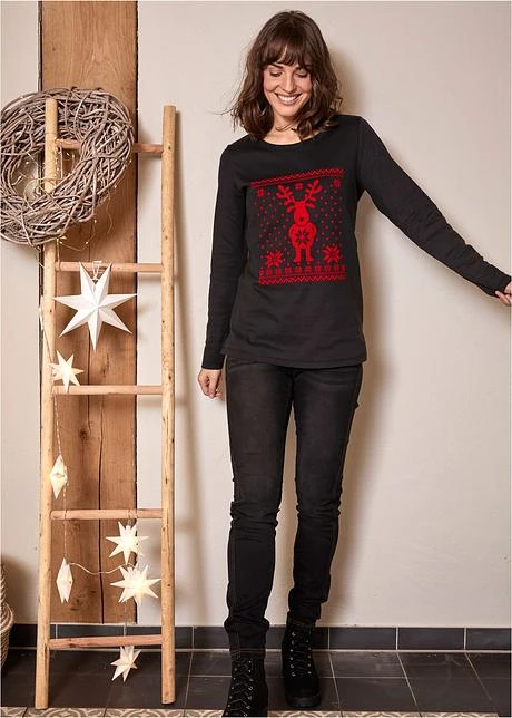 T-shirt Manches Longues Imprimé Patchwork, Manches Volantées