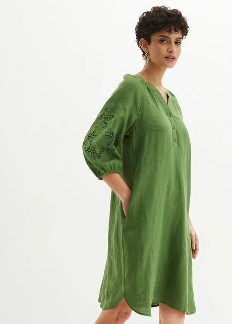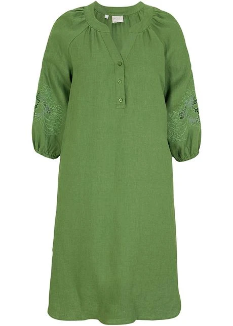 PREMIUM Robe En Lin Avec Broderie Ajourée