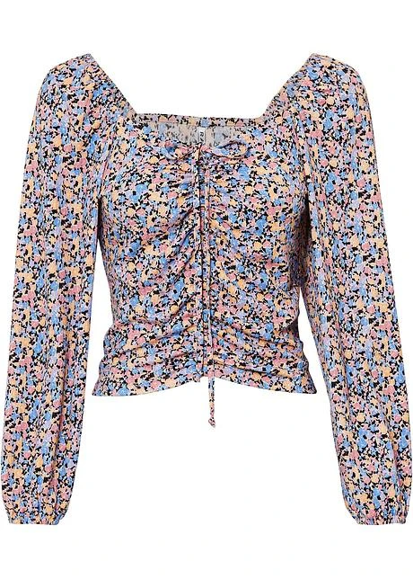 Rainbow T-shirt Manches Longues Imprimé Avec Fronces