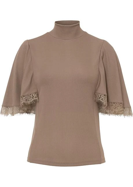 Joli T-shirt côtelé avec dentelle mode. Long. env. 56 cm.