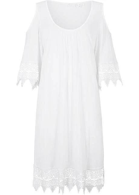 T-shirt de plage oversized en jersey avec dentelle à la base. Épaules découpées. Légèrement transparent.