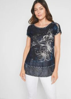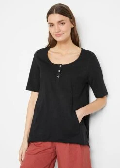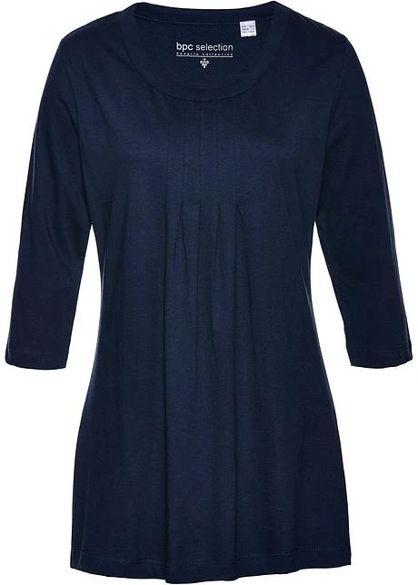 Col rond et manches 3/4, plis piqués sous la poitrine, belle longueur flatteuse, long. d’env. 76 cm à 82 cm, lavage machine.