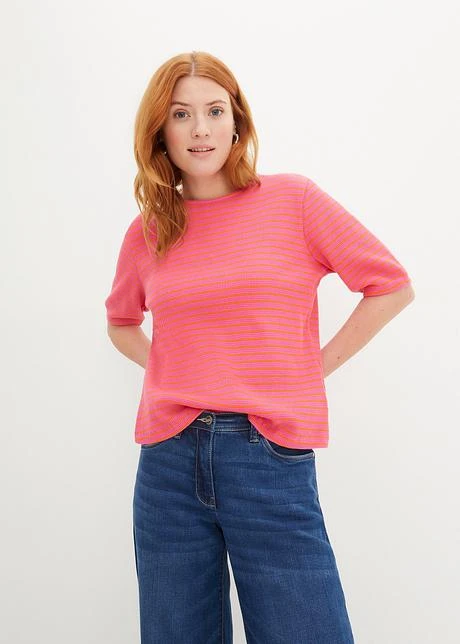 T-shirt Rayé à Demi-manches En Jersey Texturé