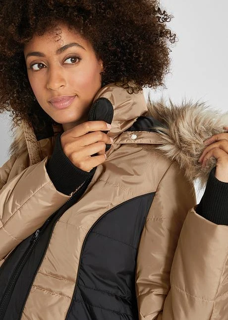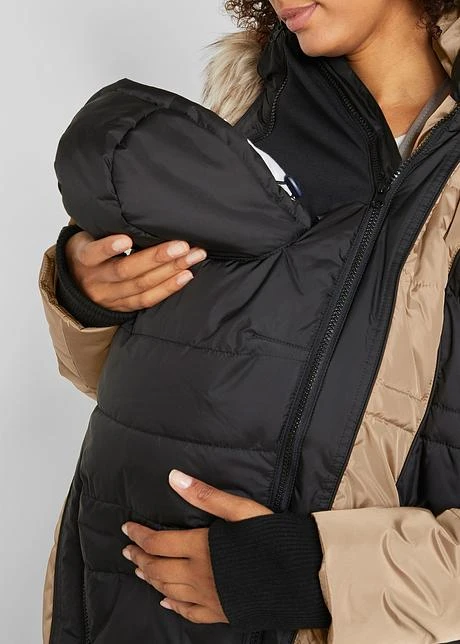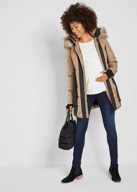 Cette veste de grossesse dotée de cordons coulissés réglables à la taille souligne votre ventre arrondi. Les zips sur le côté offrent un volume supplémentaire. Synthétique imitation fourrure à la capuche amovible par boutons.